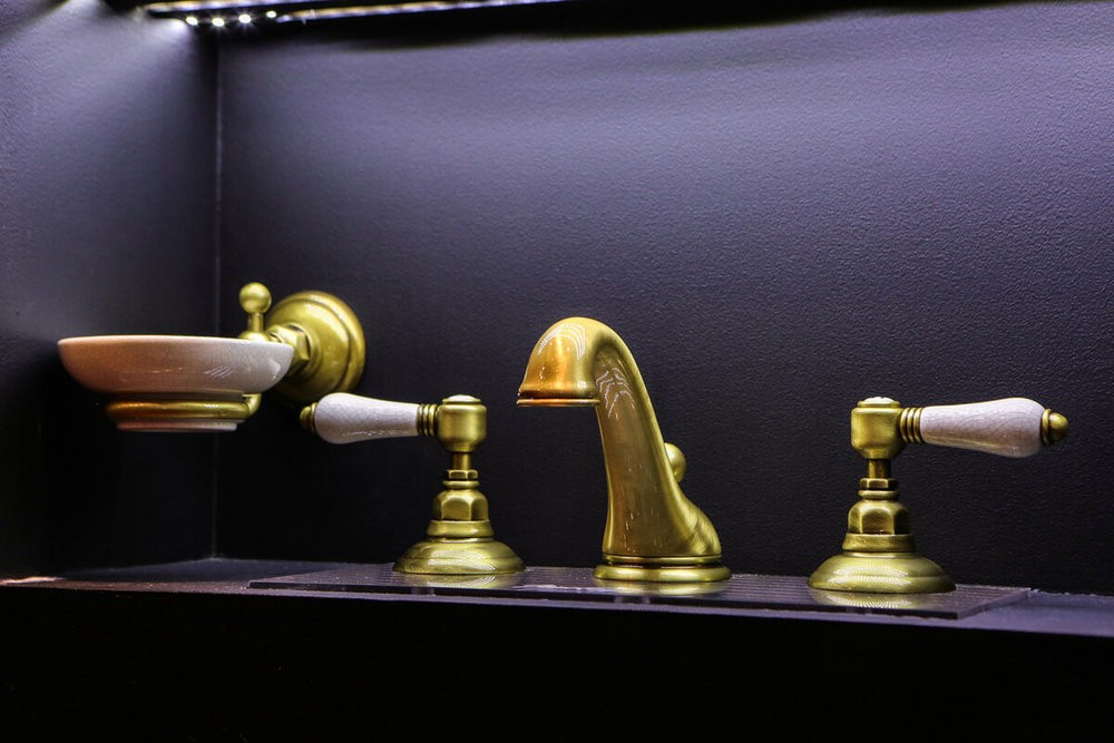 Смеситель Nicolazzi P.M. Blanc 1408BZ78 для раковины на 3 отверстия, гальваническая бронза, ручка белая керамика