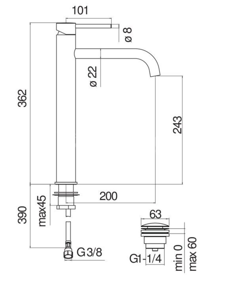 Смеситель Nobili Live LV00128/2BM для раковины высокий, матовый черный