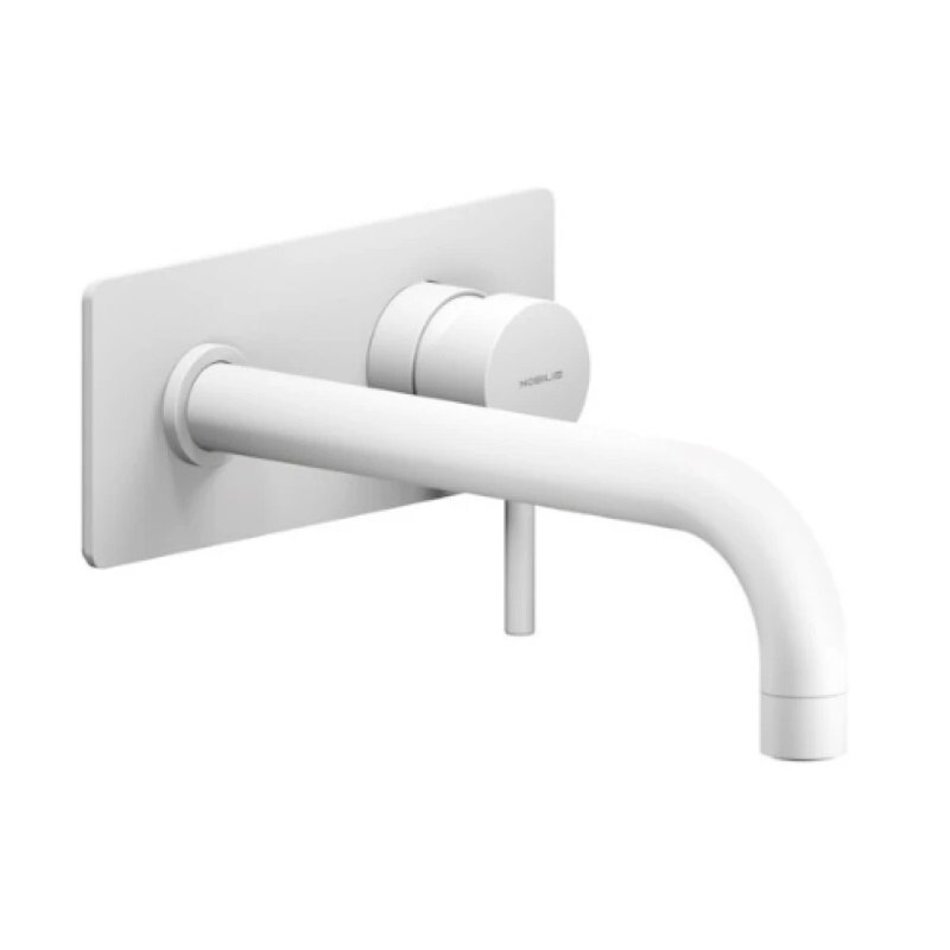 Настенный смеситель для раковины - внешняя часть (белый матовый). Ограничитель напора с торможением на 50%. Аэратор против известковых отложений M 22 x 1. Длина излива 200 мм. Без сливного набора. Дополнительно необходимо приобретать внутренний механизм WE00198 - в комплект поставки не входит.