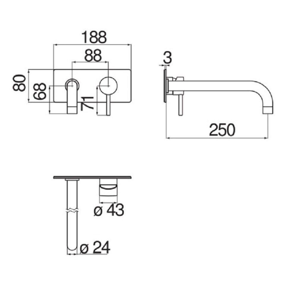 - Длина излива, мм: 250