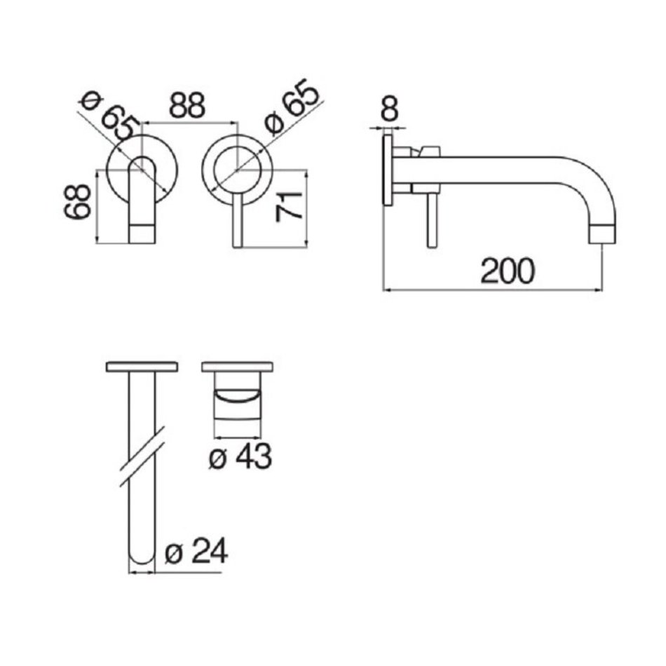 Настенный смеситель для раковины - внешняя часть (чёрный матовый). Ограничитель напора с торможением на 50%. Аэратор с защитой против известковых отложений M 22 x 1. Длина излива 200 мм. Без сливного набора. Дополнительно необходимо приобретать внутренний механизм WE00198 - в комплект поставки не входит.