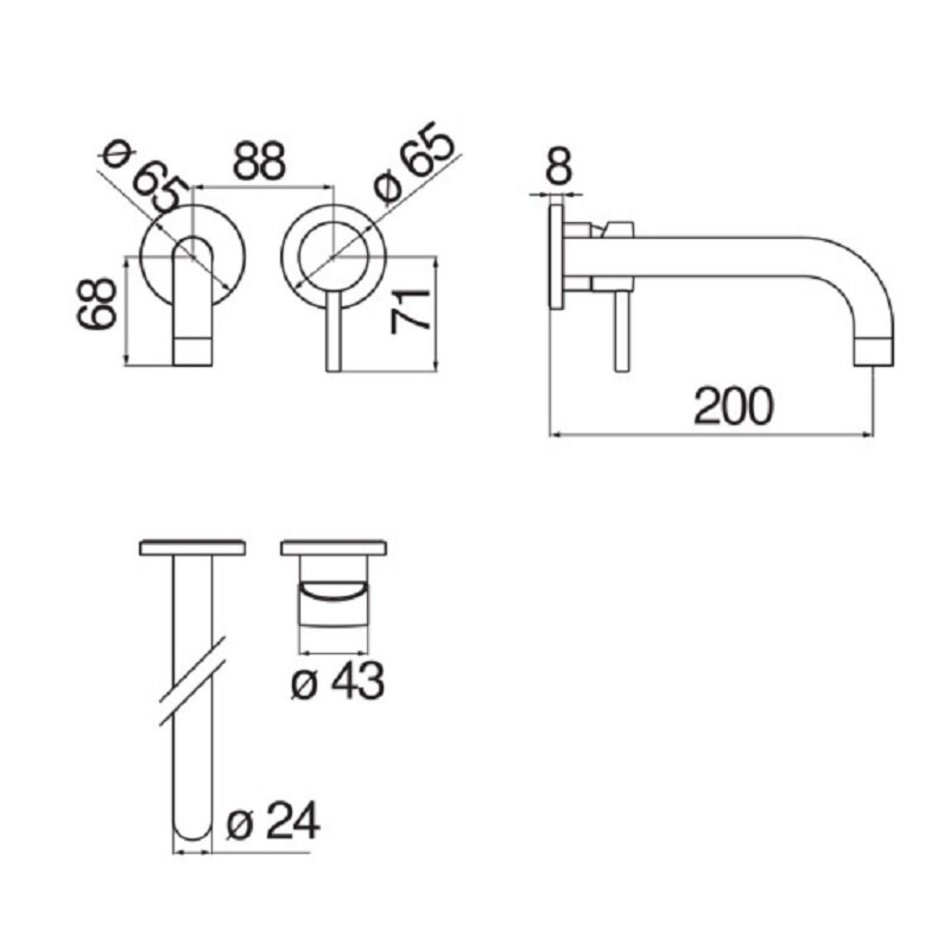 - Длина излива, мм: 200