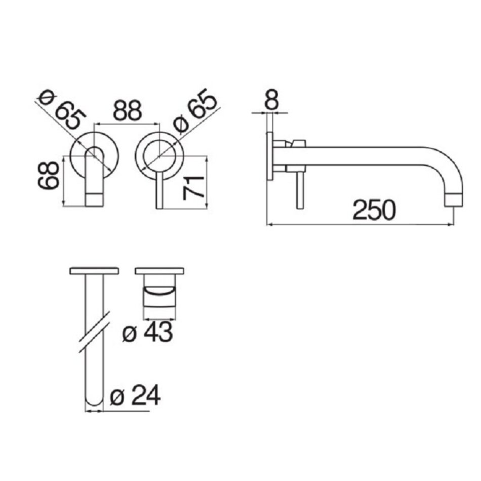Настенный смеситель для раковины - внешняя часть (белый матовый). Ограничитель напора с торможением на 50%. Аэратор с защитой против известковых отложений M 22 x 1. Длина излива 250 мм. Без сливного набора. Дополнительно необходимо приобретать внутренний механизм WE00198 - в комплект поставки не входит.