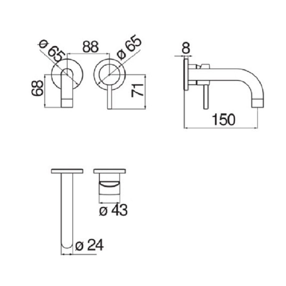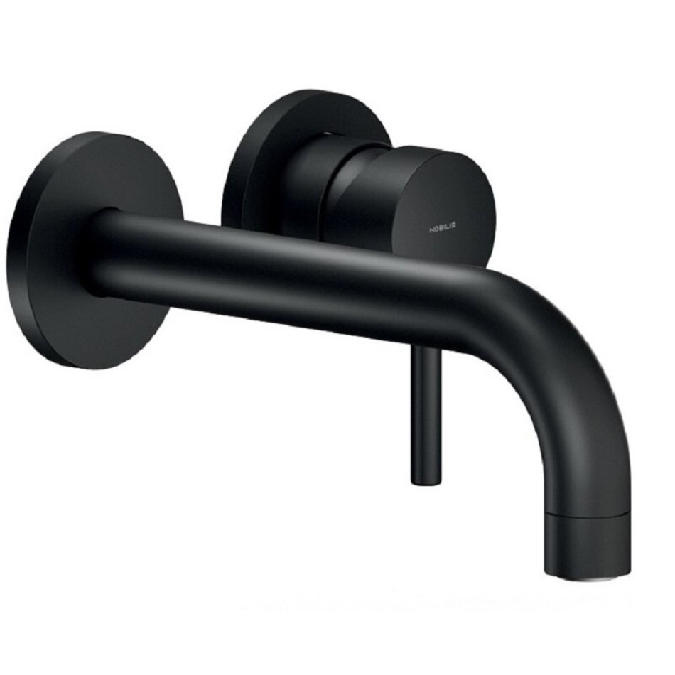 Настенный смеситель для раковины - внешняя часть (чёрный матовый). Ограничитель напора с торможением на 50%. Аэратор с защитой против известковых отложений M 22 x 1. Длина излива 150 мм. Без сливного набора. Дополнительно необходимо приобретать внутренний механизм WE00198 - в комплект поставки не входит.