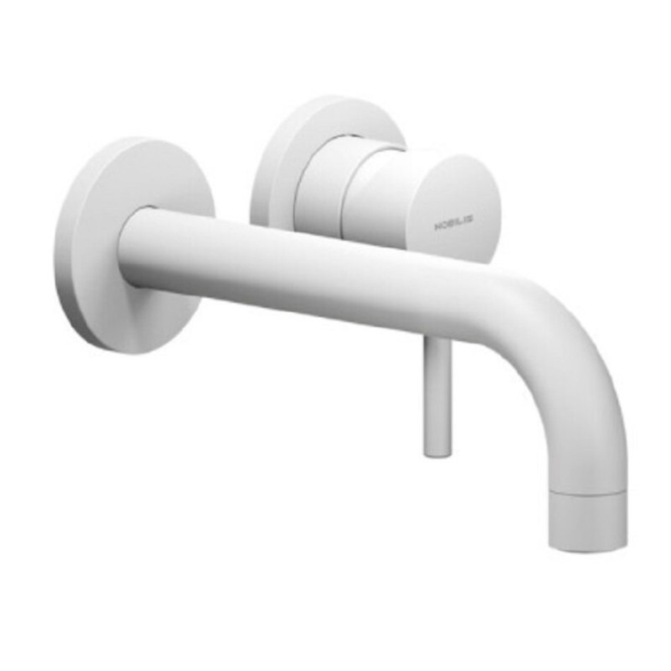 Настенный смеситель для раковины - внешняя часть (белый матовый). Ограничитель напора с торможением на 50%. Аэратор с защитой против известковых отложений M 22 x 1. Длина излива 150 мм. Без сливного набора. Дополнительно необходимо приобретать внутренний механизм WE00198 - в комплект поставки не входит.