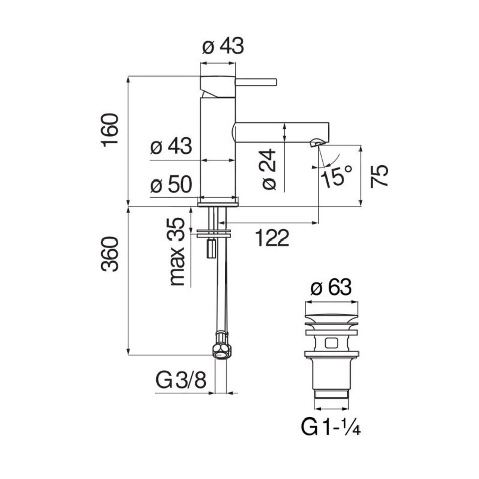 Смеситель Nobili Live LV00418/3BM, для раковины, с донным клапаном, цвет черный матовый