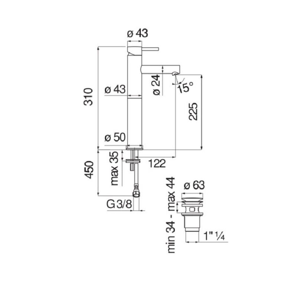Смеситель Nobili Live LV00428/2CR, для раковины, с донным клапаном, цвет хром глянцевый