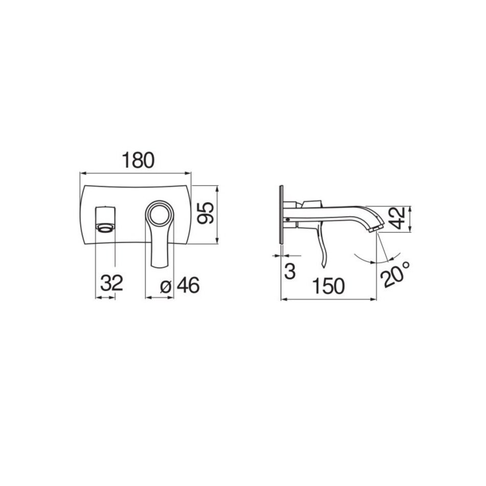 - Настенный смеситель для раковины - внешняя часть (хром).