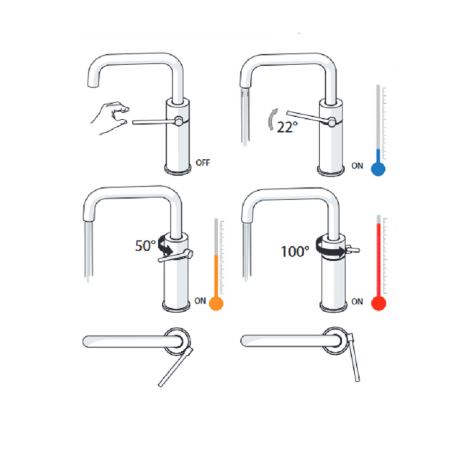 - Ограничитель потока воды с открытием в положении холодная вода.