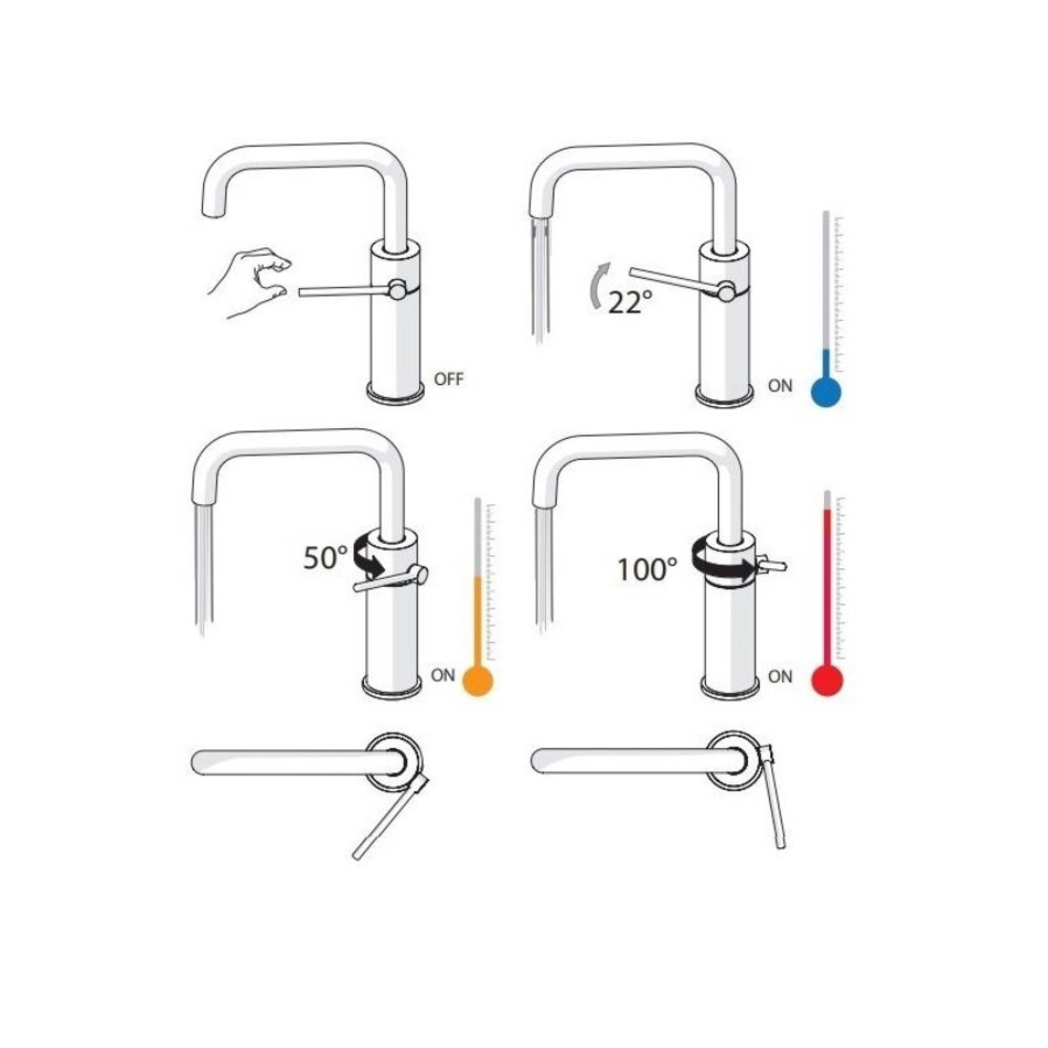 - Ограничитель потока воды с открытием в положении холодная вода.