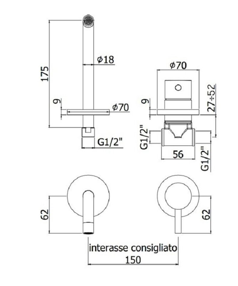 Смеситель Paffoni Light LIG006CR70 для раковины встраиваемый, цвет хром
