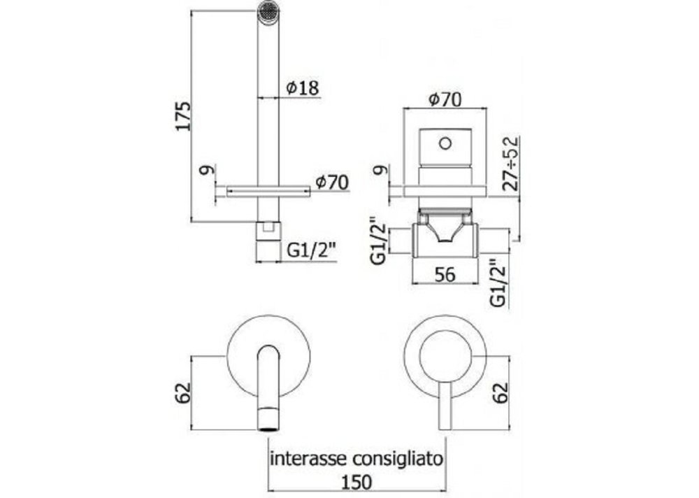 - Длина излива: 17.5 см