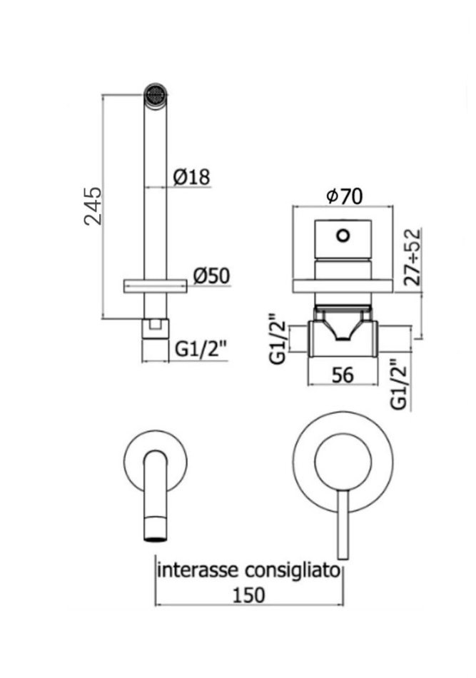- Длина излива: 24.5 см