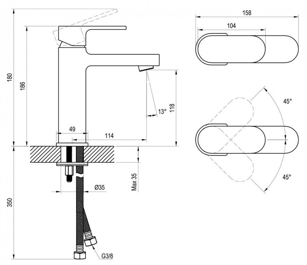 Смеситель Ravak Chrome X070428 CR 014.20BL для раковины, черный матовый