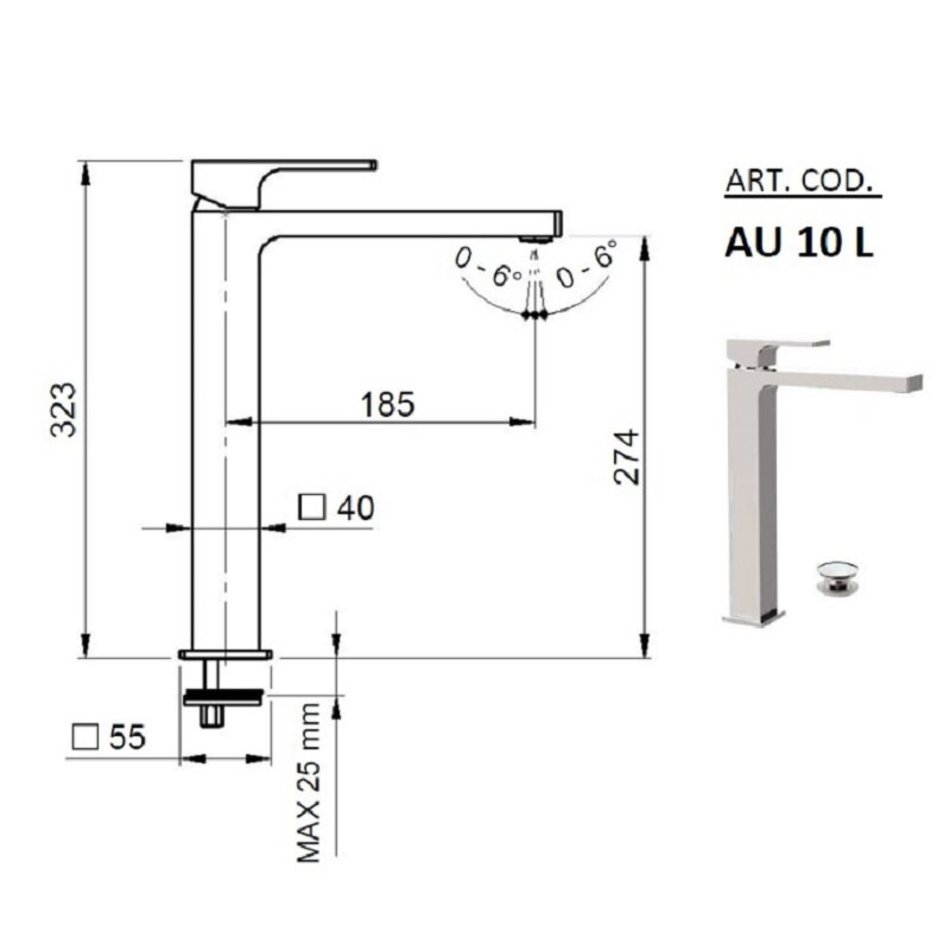 Смеситель Remer Absolute AU10L для раковины, с донным клапаном, цвет хром