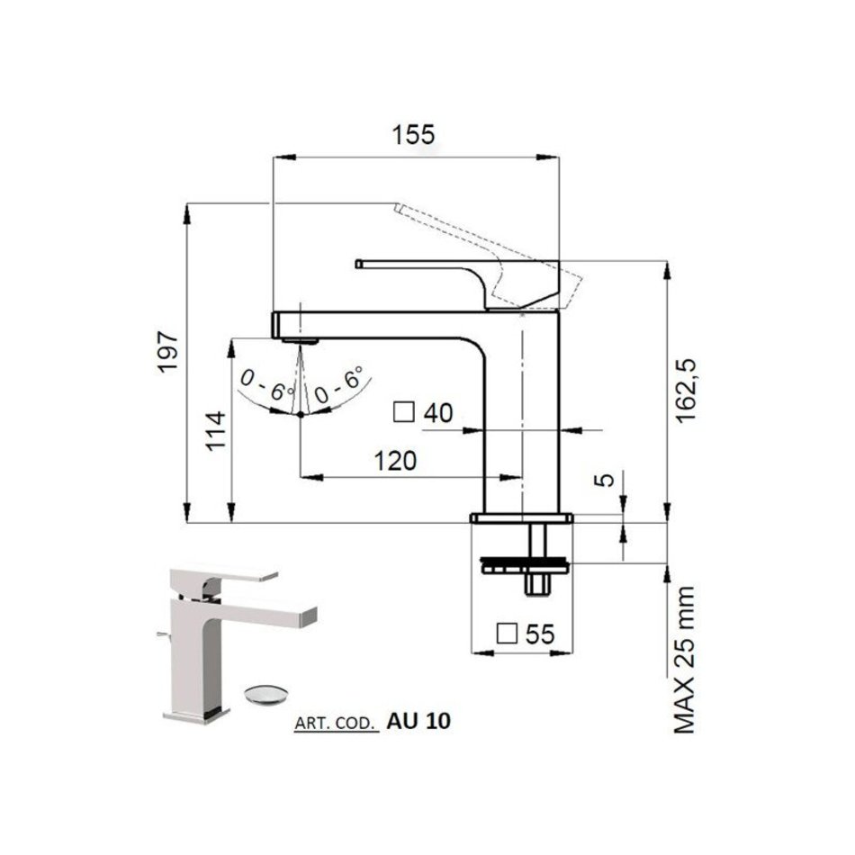 Смеситель Remer Absolute AU12 для раковины, без донного клапана, цвет хром