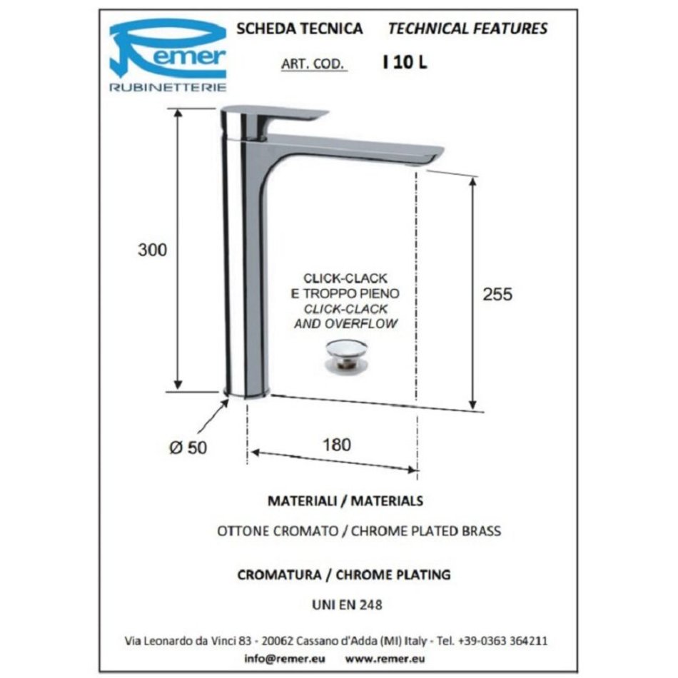 Смеситель Remer Infinity I10L для раковины, c донным клапаном, цвет хром