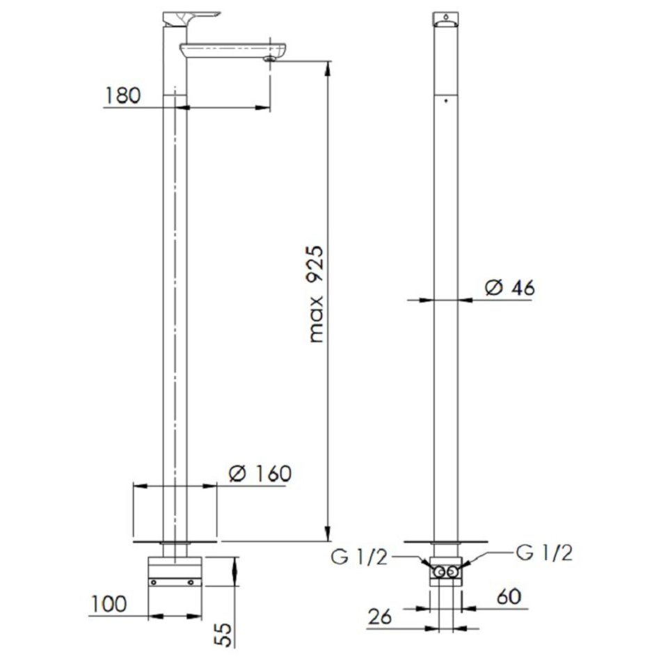 Смеситель Remer Infinity I18 для раковины, напольный, с донным клапаном, цвет хром