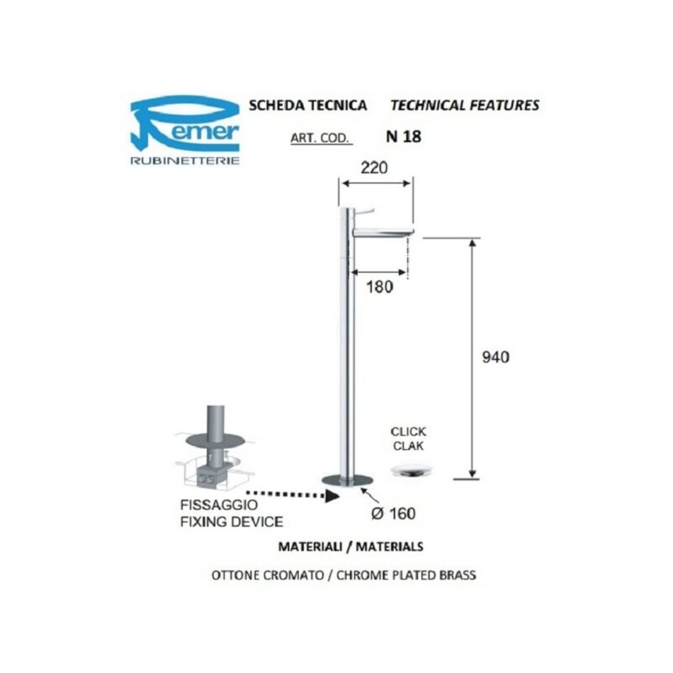 Смеситель Remer Minimal N18 для раковины, напольный, с донным клапаном, цвет хром