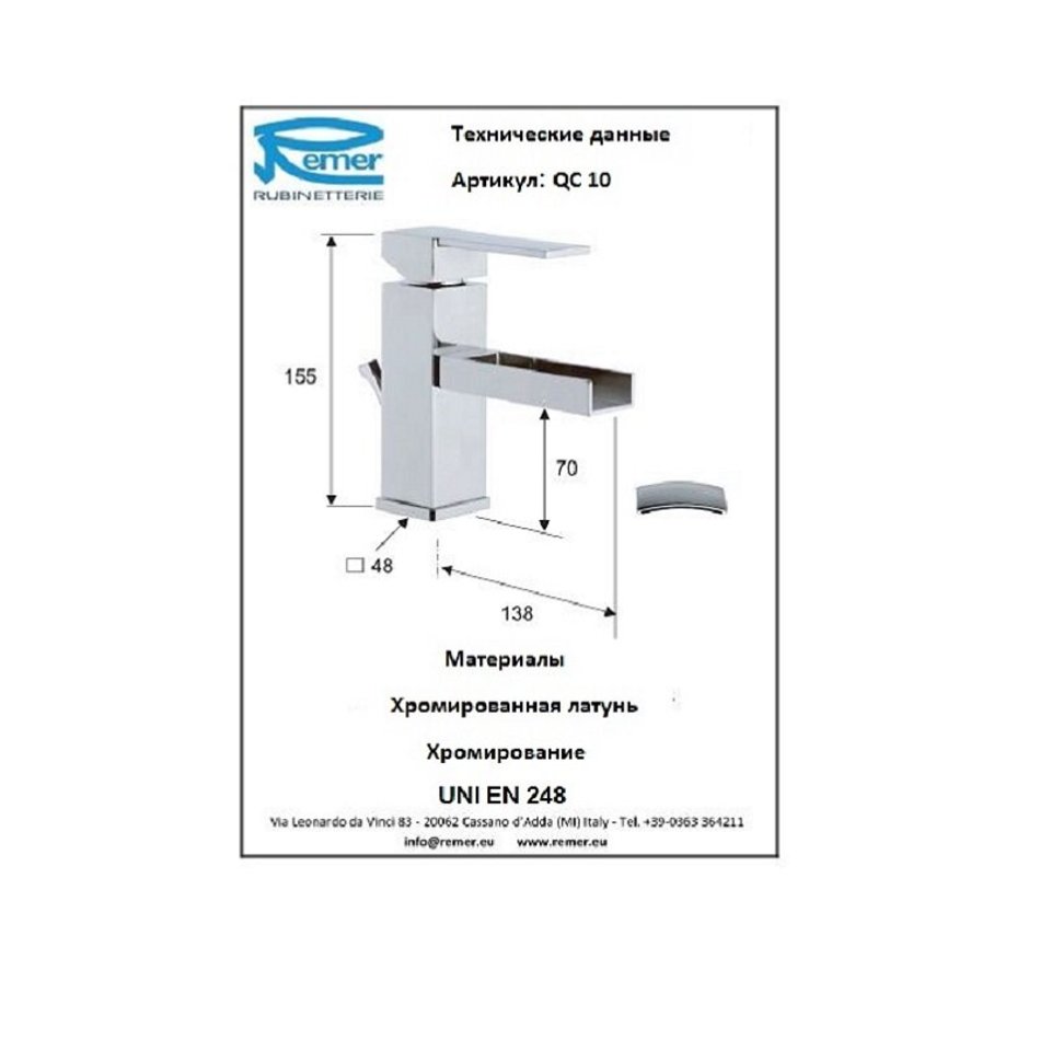 Смеситель Remer Qubika Cascata QC10 для раковины, c донным клапаном, цвет хром