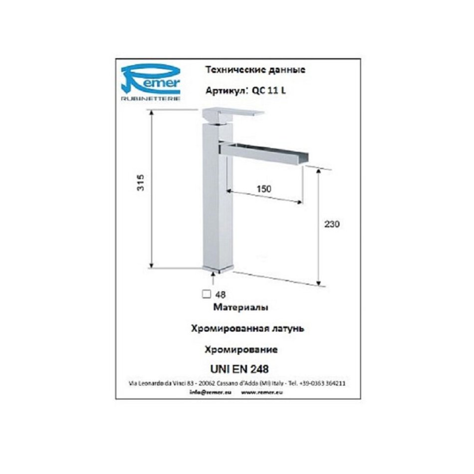 Смеситель Remer Qubika Cascata QC11L для раковины, без донного клапана, цвет хром
