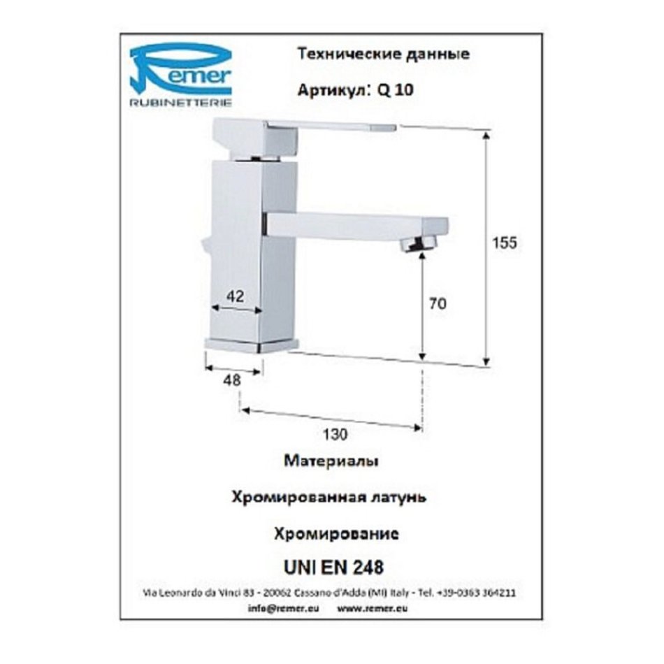 Смеситель Remer Qubika Q10 для раковины, с донным клапаном, цвет хром