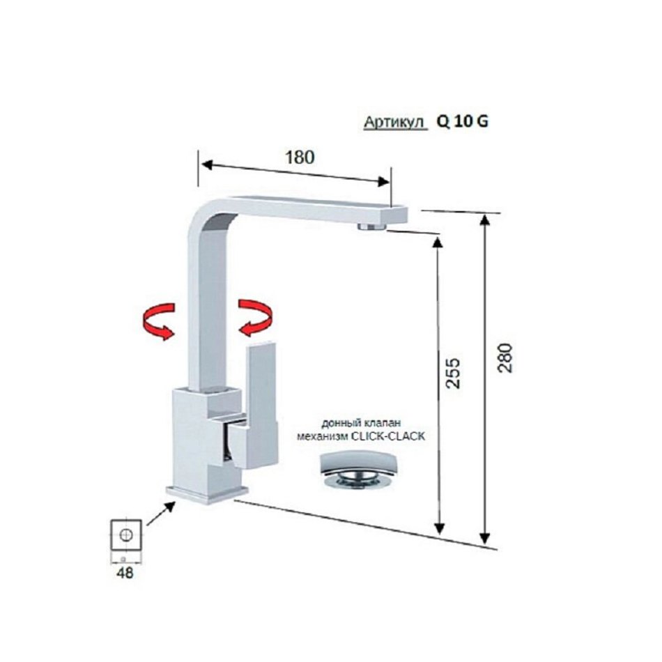 Смеситель Remer Qubika Q10G для раковины, с донным клапаном, цвет хром