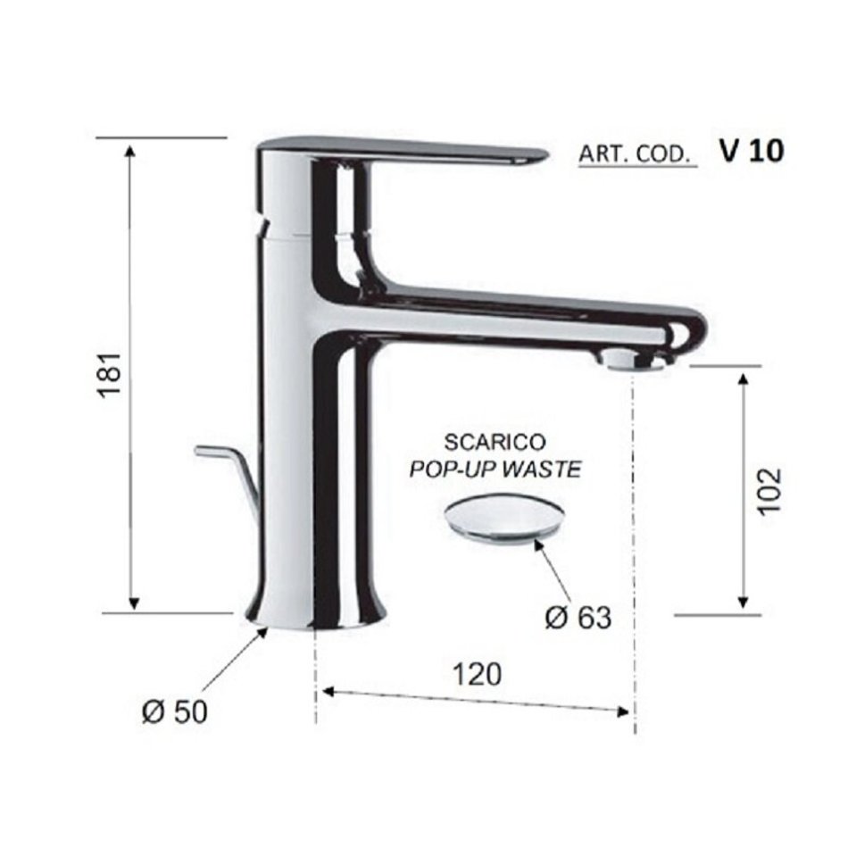 Смеситель Remer Vanity V10 для раковины, c донным клапаном, цвет хром
