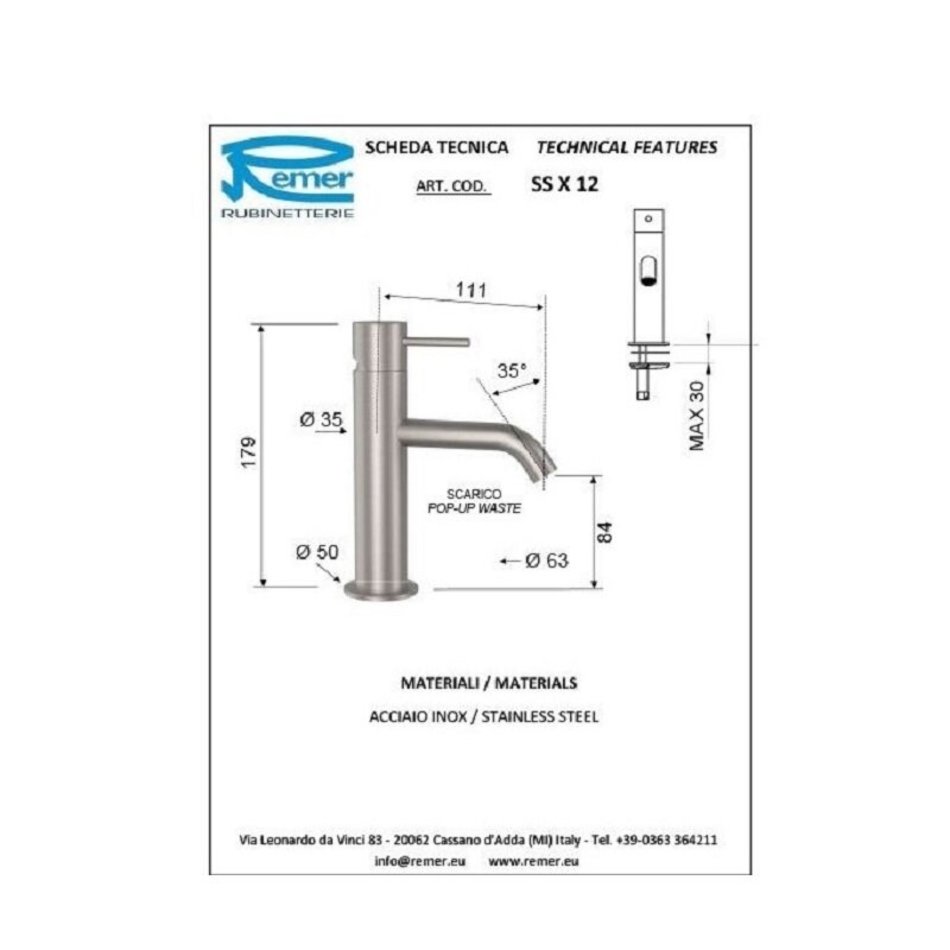 Смеситель Remer X Style Inox SSX12 для раковины, без донного клапана, цвет нержавеющая сталь