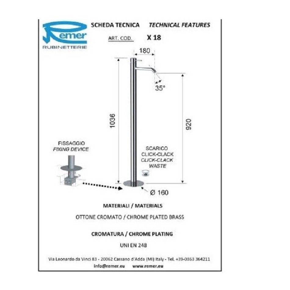 Смеситель Remer X Style Inox SSX18 для раковины, напольный, цвет нержавеющая сталь