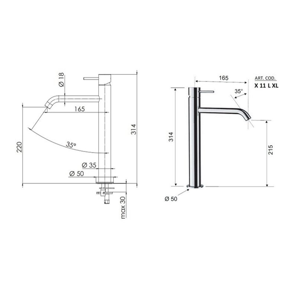 Высокий смеситель для раковины (хром). Без донного клапана. Высота смесителя 314 мм. Дизайн этой серии разработан Кристианом Мапелли (Cristian Mapelli) и отделом научных разработок и развития компании Remer. Прекрасно подойдет для модернизации или ремонта практически любого помещения. В Серии X Style используются картриджи диаметром 25 мм, выпускаемые STSR-технической лабораторией научно-исследовательских и конструкторских разработок. Корпус смесителя полностью изготовлен из латуни. Гарантия 5 лет. Сделано в Италии.