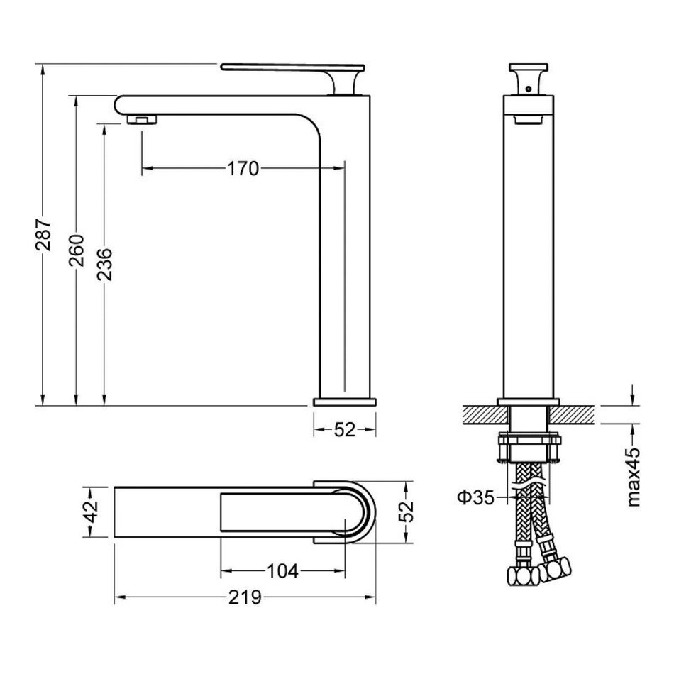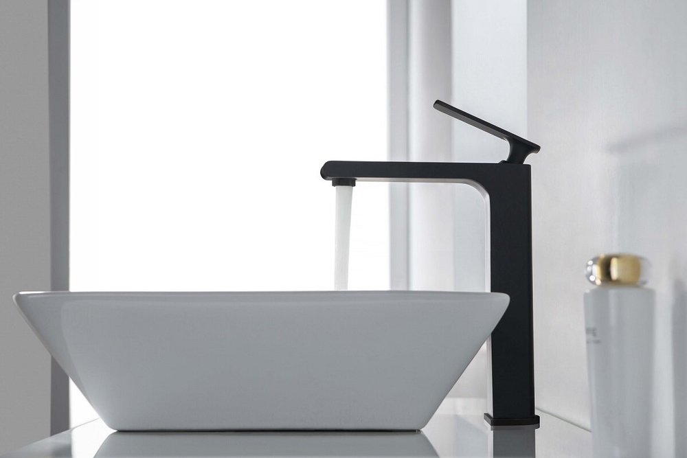 - Высокий смеситель для накладной раковины или раковины-чаши