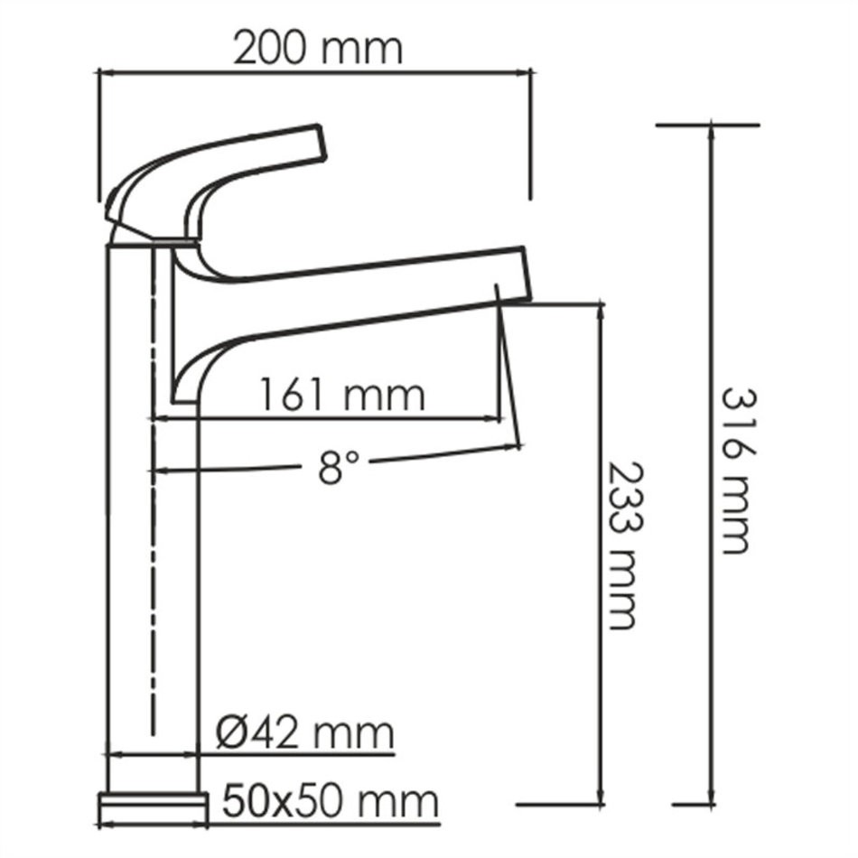 - Высота смесителя: 316 мм