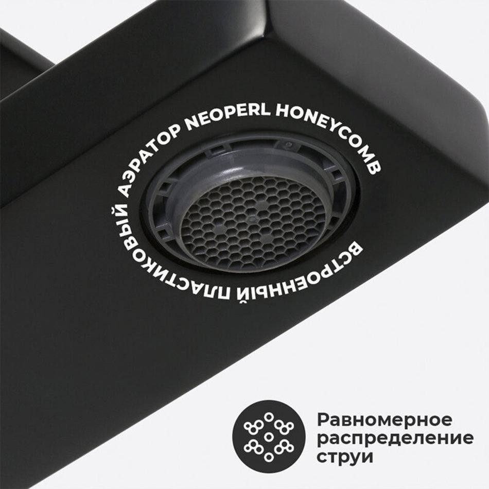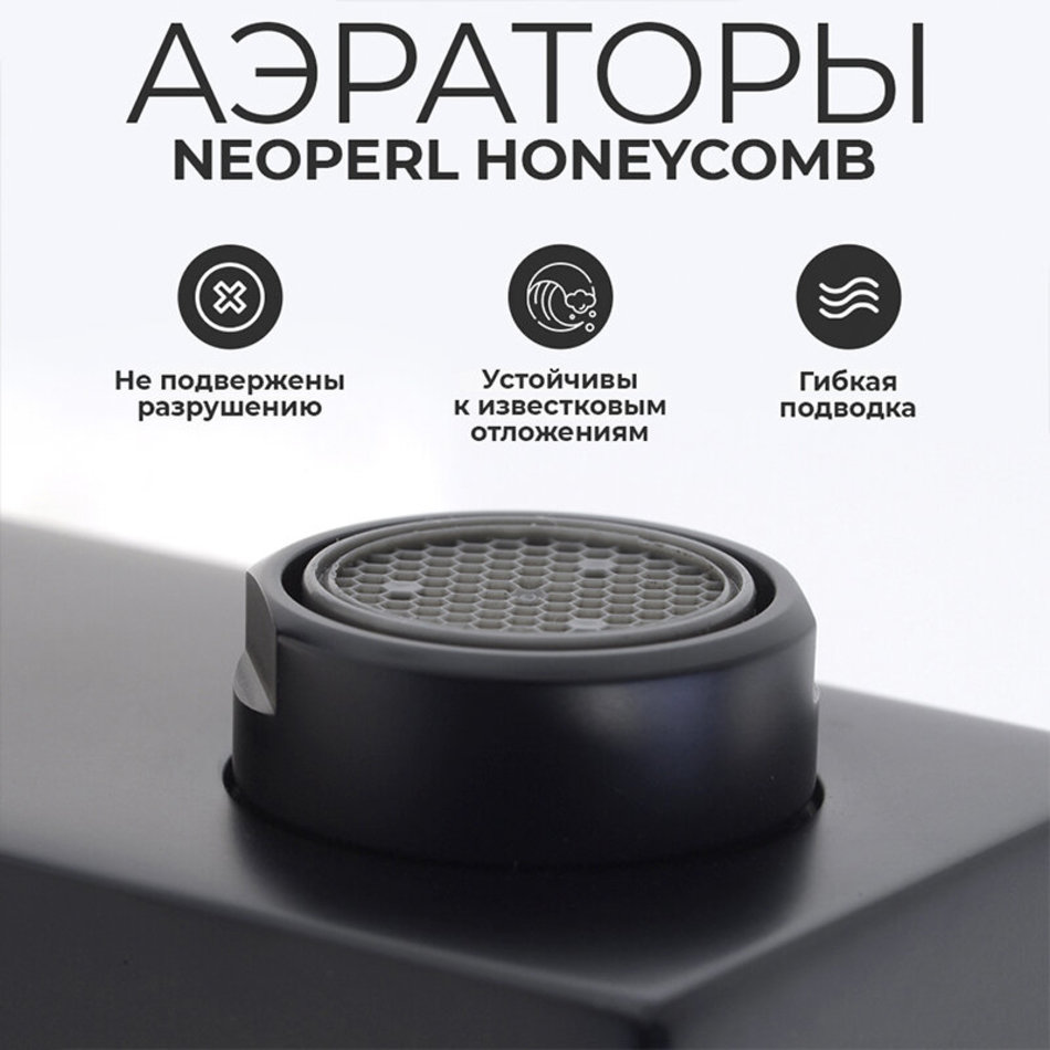- Встроенный пластиковый аэратор Neoperl HONEYCOMB (Германия) для равномерного распределения струи