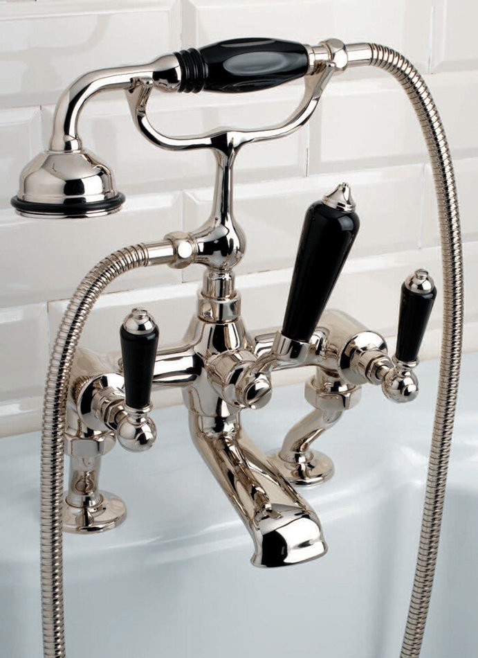 Cмеситель Devon&Devon Black Dandy ( Блэк Денди ) MARF40BCRBD для ванны/душа на борт ванны, черные ручки.