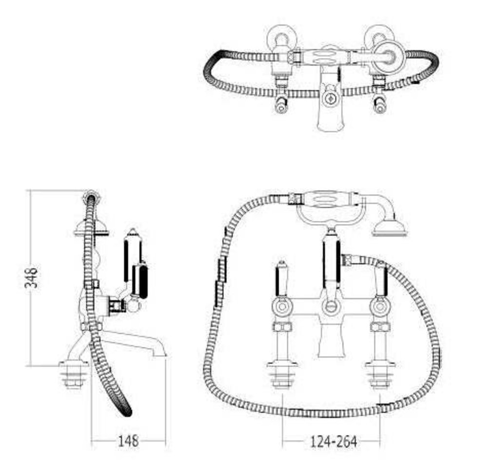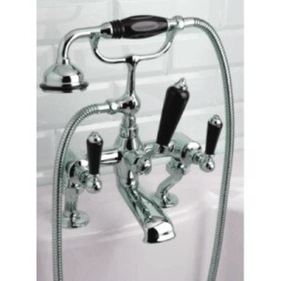 Cмеситель Devon&Devon Black Dandy ( Блэк Денди ) MARF40BCRBD для ванны/душа на борт ванны, черные ручки.