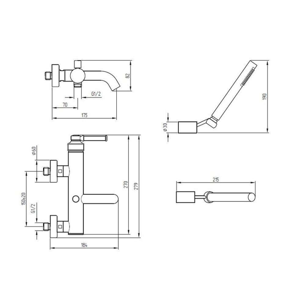Cмеситель Migliore Ermitage Mini 30186 для ванны и душа, с душевым гарнитуром, цвет бронза