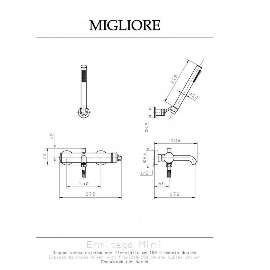 Cмеситель Migliore Ermitage Mini 31418 для ванны и душа, с душевым гарнитуром, цвет золото