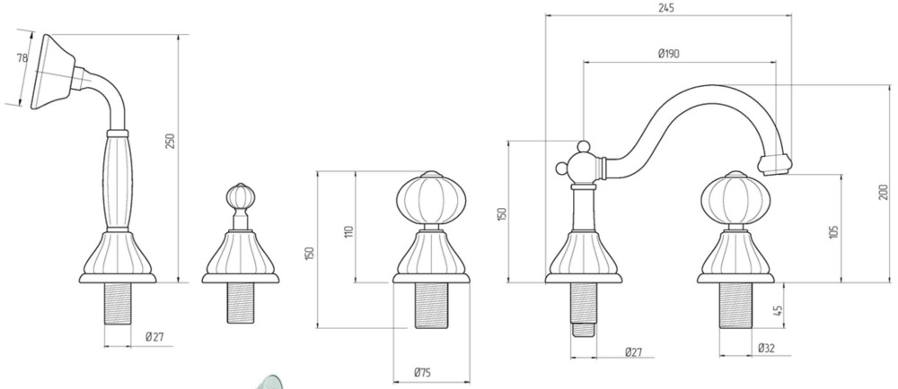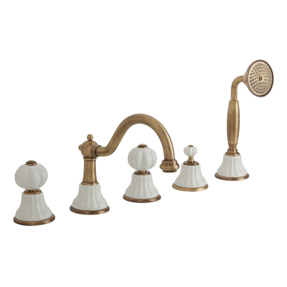 Cмеситель Migliore Olivia 18997 на борт ванны, бронза, ручки белая керамика