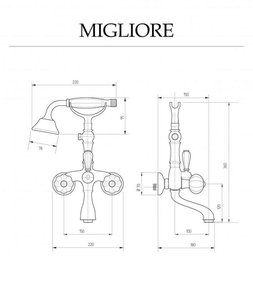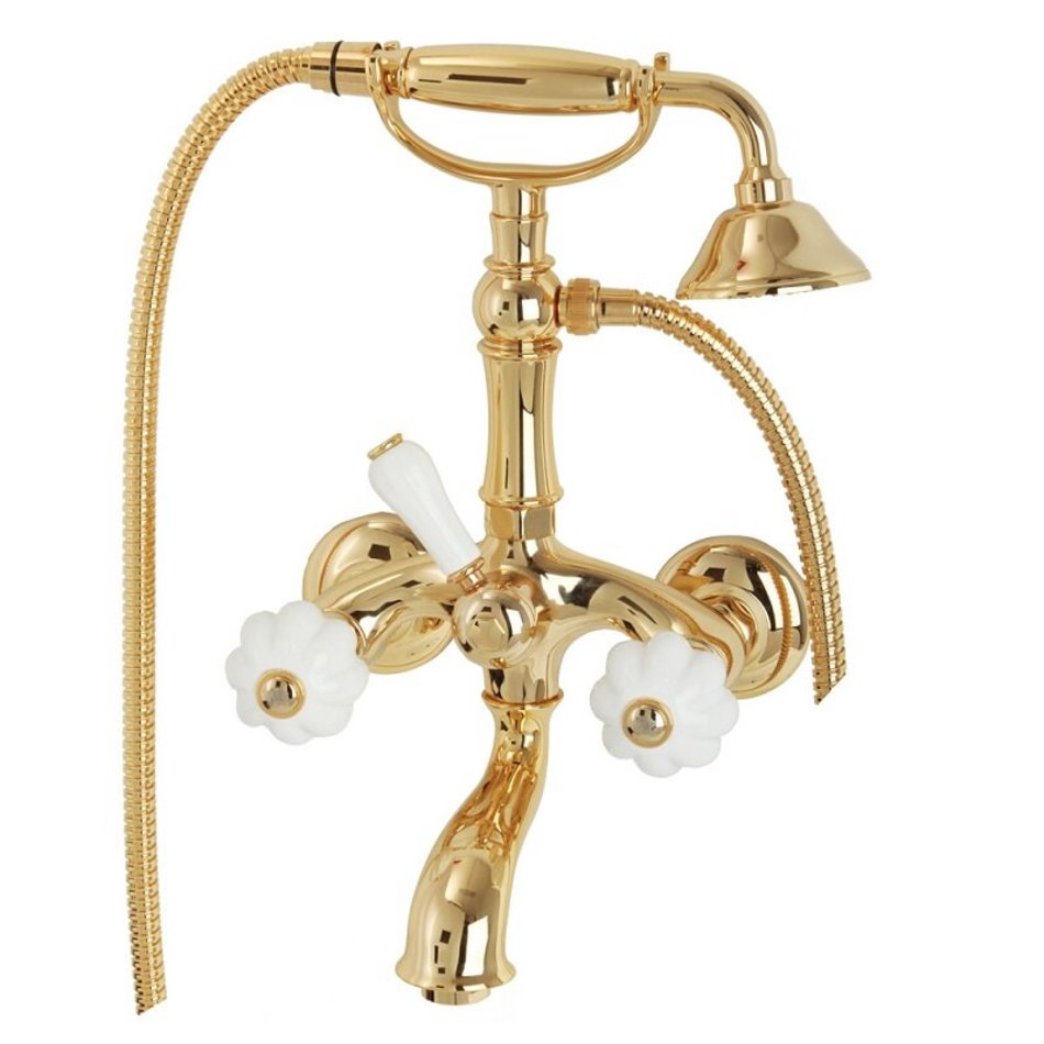 Cмеситель Migliore Olivia 19020 для ванны и душа с гарнитуром, золото, ручки белая керамика