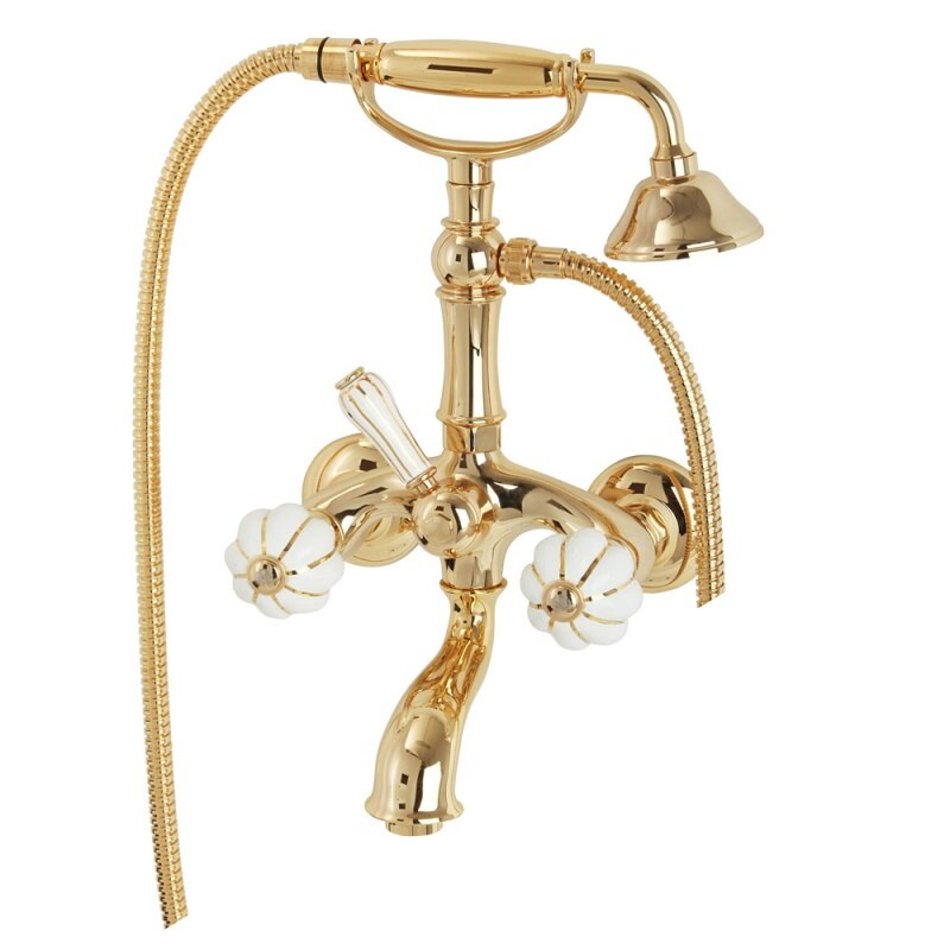 Cмеситель Migliore Olivia 19028 для ванны и душа с гарнитуром, золото, ручки декор золото