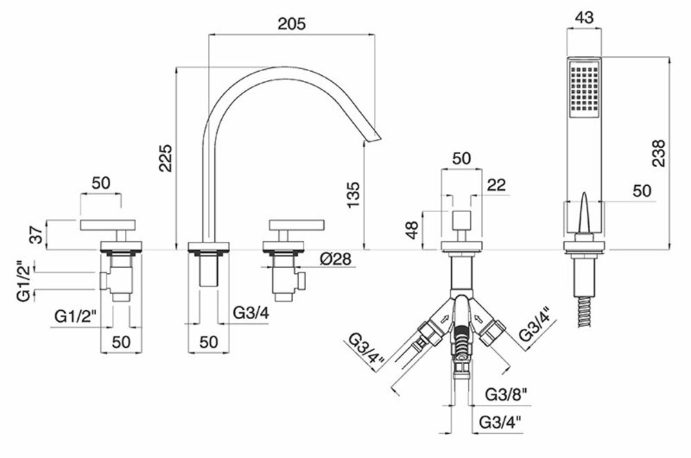 Cмеситель Migliore Syntesi 19527 для ванны/душа, хром