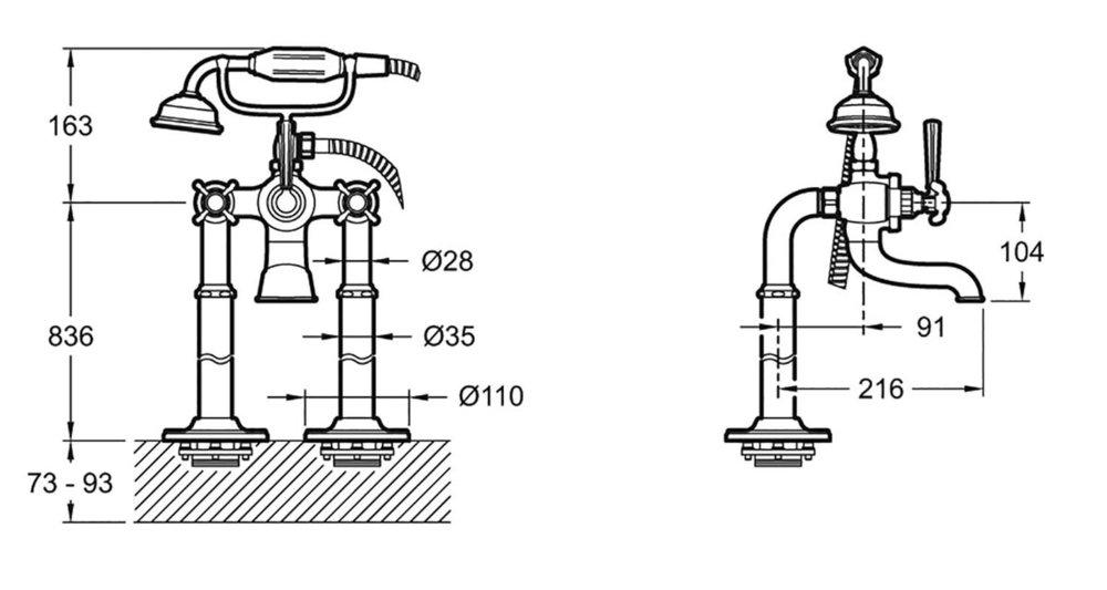 Напольный смеситель Jacob Delafon Cleo 1889, E24314-CP для ванны и душа, хром