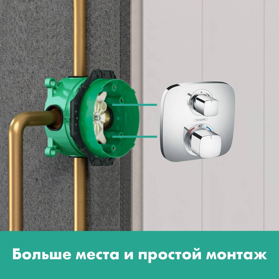 - подходит ко всем смесителям для ванны и душа, ко всем наружным частям термостатов СМ