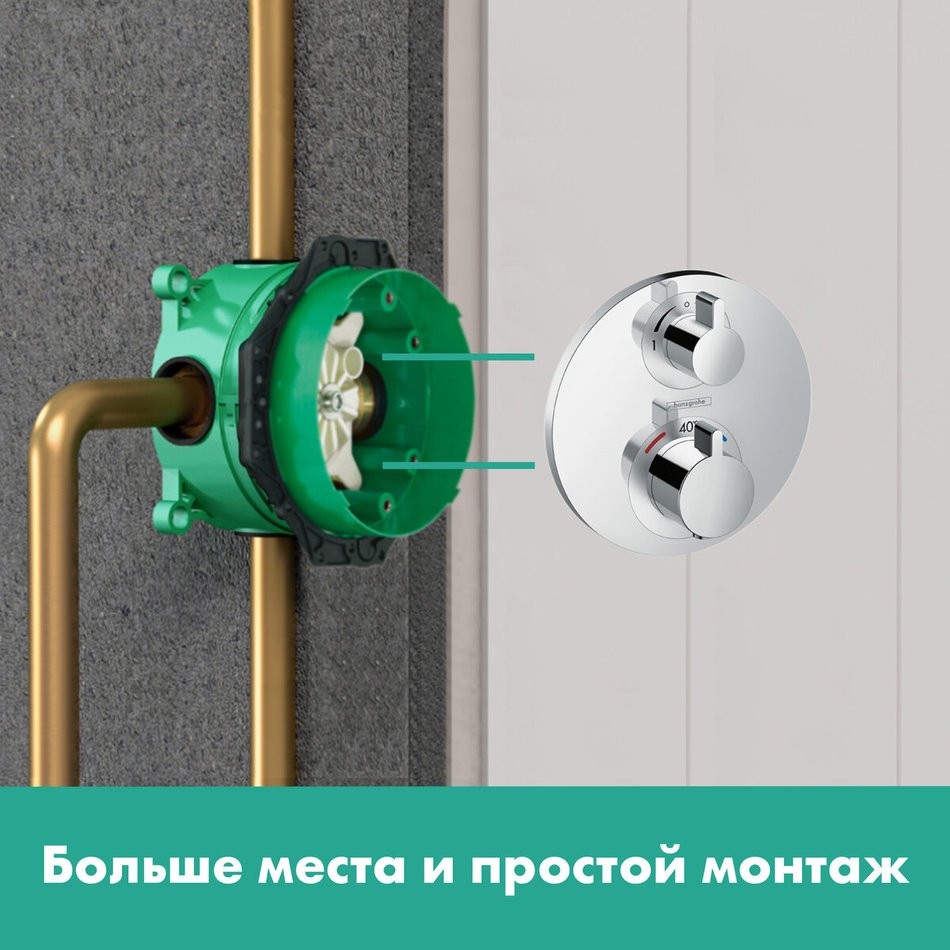 Hansgrohe Ibox Universal 01800180 делает скрытый монтаж простым как никогда, являясь первой в мире скрытой частью, подходящей ко всем обычным и термостатическим смесителям на 1/2 или 3/4 дюйма. Все термостаты Hansgrohe и Axor совместимы с ibox universal, а его новейший вариант оснащен гибким переключающим кольцом для большего удобства при монтаже. В прошлое отошли проблемы при установке или поставке всех необходимых деталей. Подходящий ко всем типам и видам монтажа, ibox universal полностью герметичен и обеспечивает хорошую звукоизоляцию, с входящим в комплект промывочным блоком.