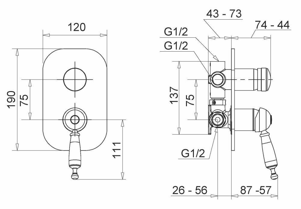 Смеситель 4-х позиционный Migliore Oxford 19100 для душа с дивертором - бронза