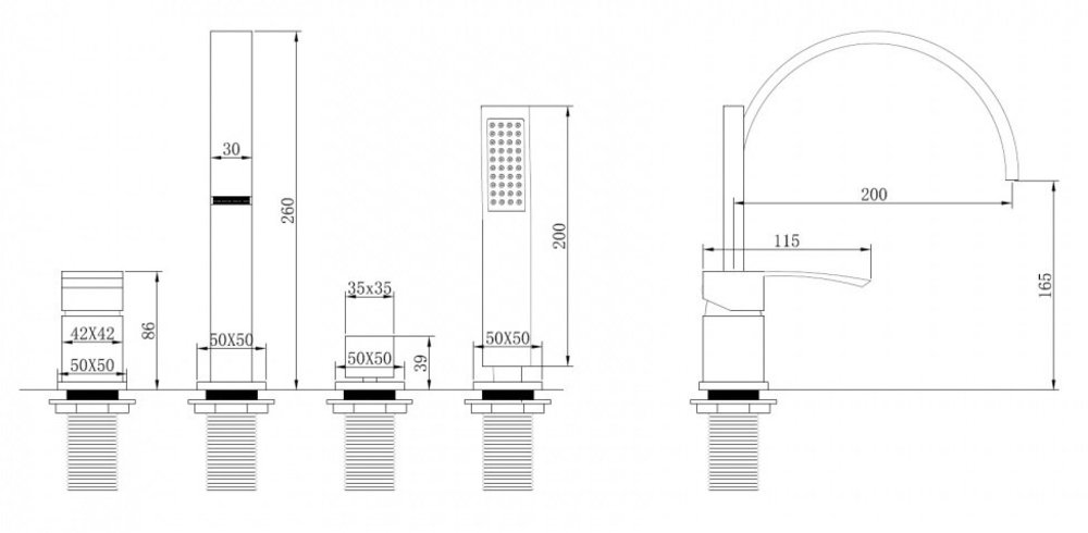 Смеситель Abber Wasserfal для ванны, на борт ванны, черный матовый, AF8613B