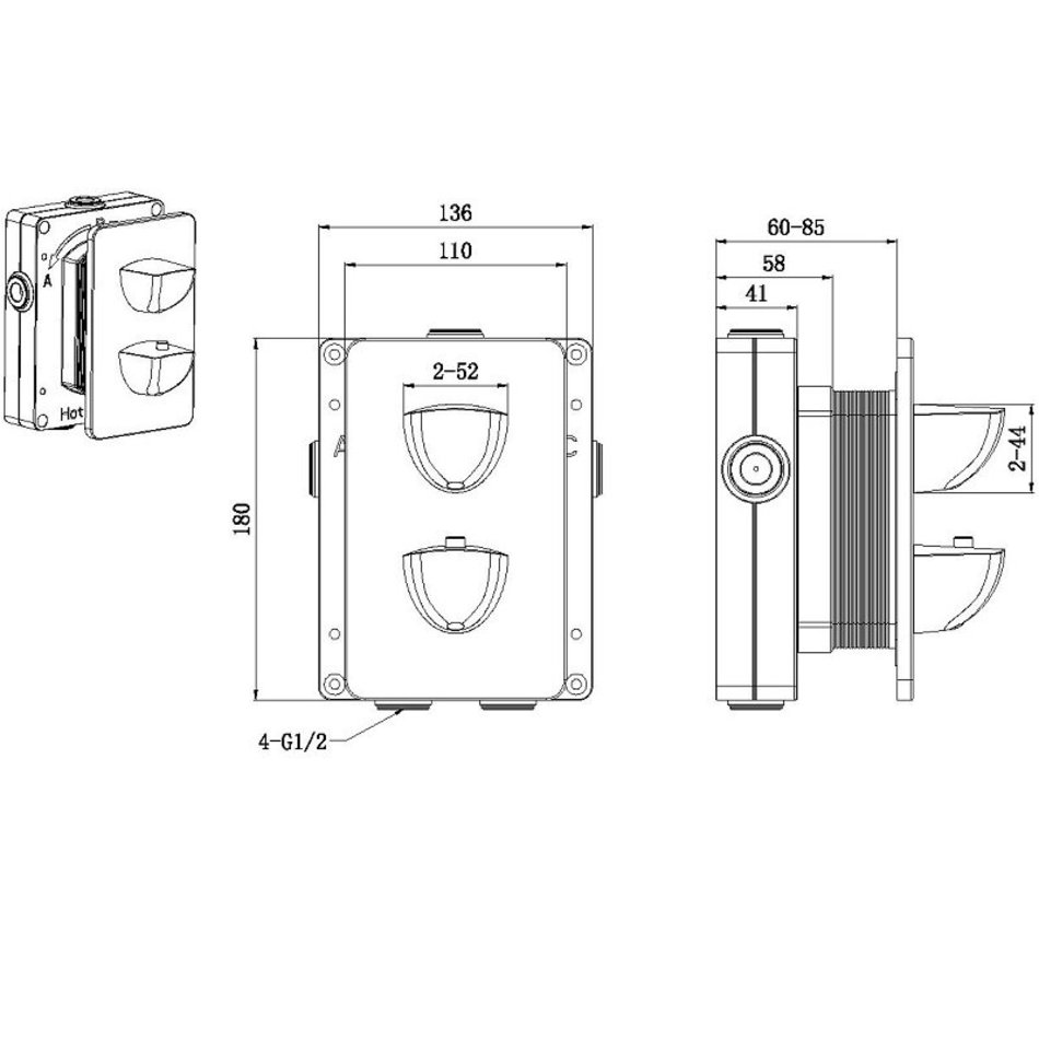 - Встраиваемый термостатический смеситель на 1 потребитель воды, дополнительно приобретается оборудование на 1 потребителя (Пример: №1 верх.душ или другой элемент на 1 потребитель (излив или душевой набор с водорозеткой))
