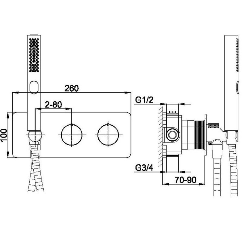- Оснащение: душевая лейка, аэратор, держатель для душа, душевой шланг, эксцентрики, жесткая подводка