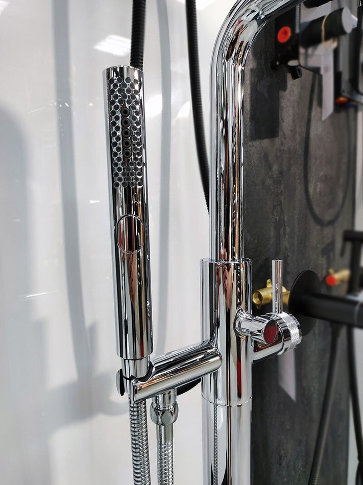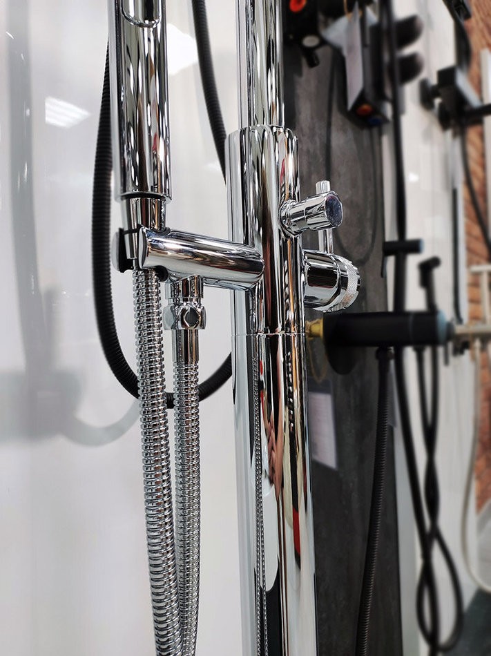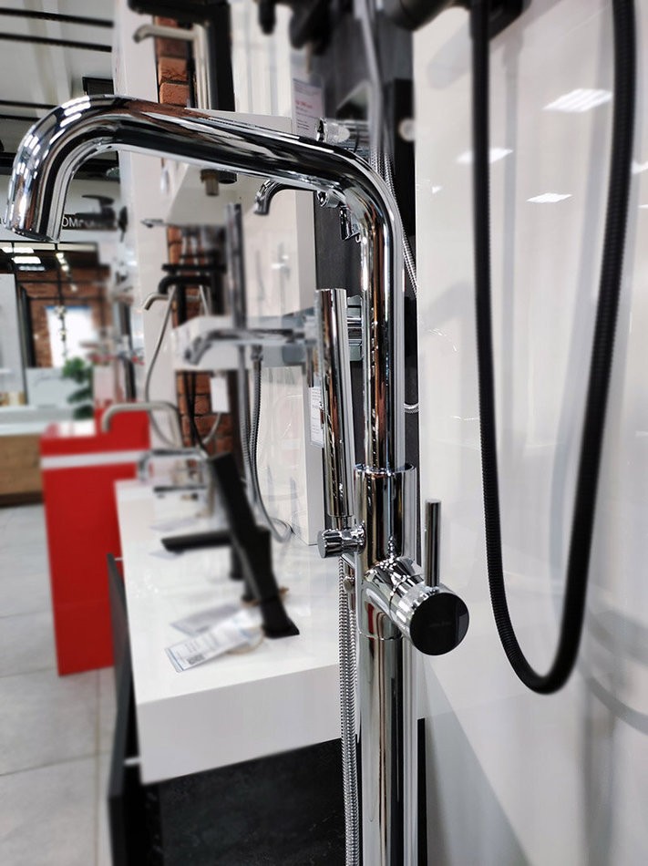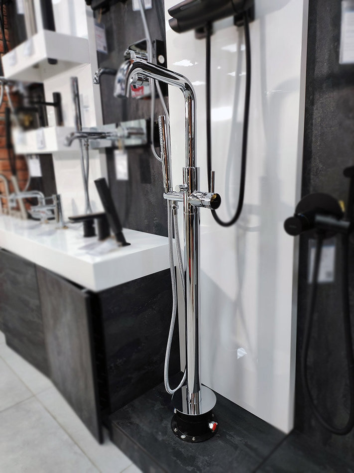 - Напольный смеситель для ванны и душа с душевым гарнитуром